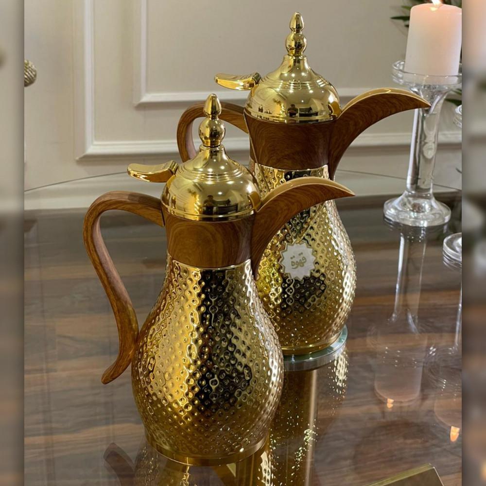 ترامس كاروليت ذهبي مع خشبي - قهوة