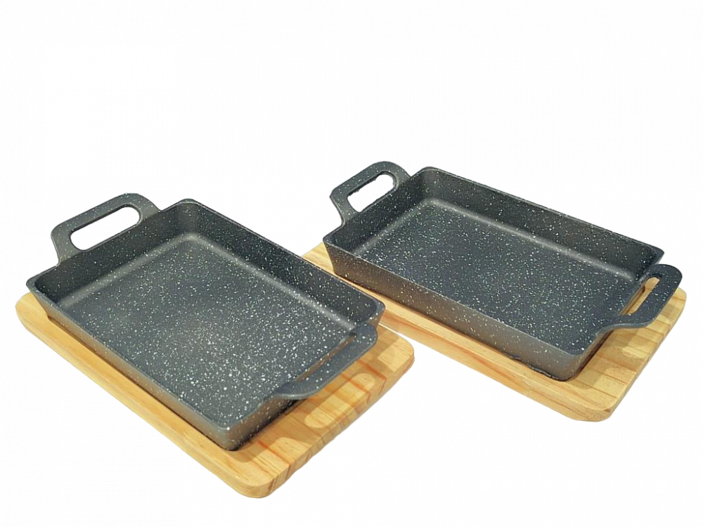جريل مستطيل أسود بقاعدة خشب بالحبة