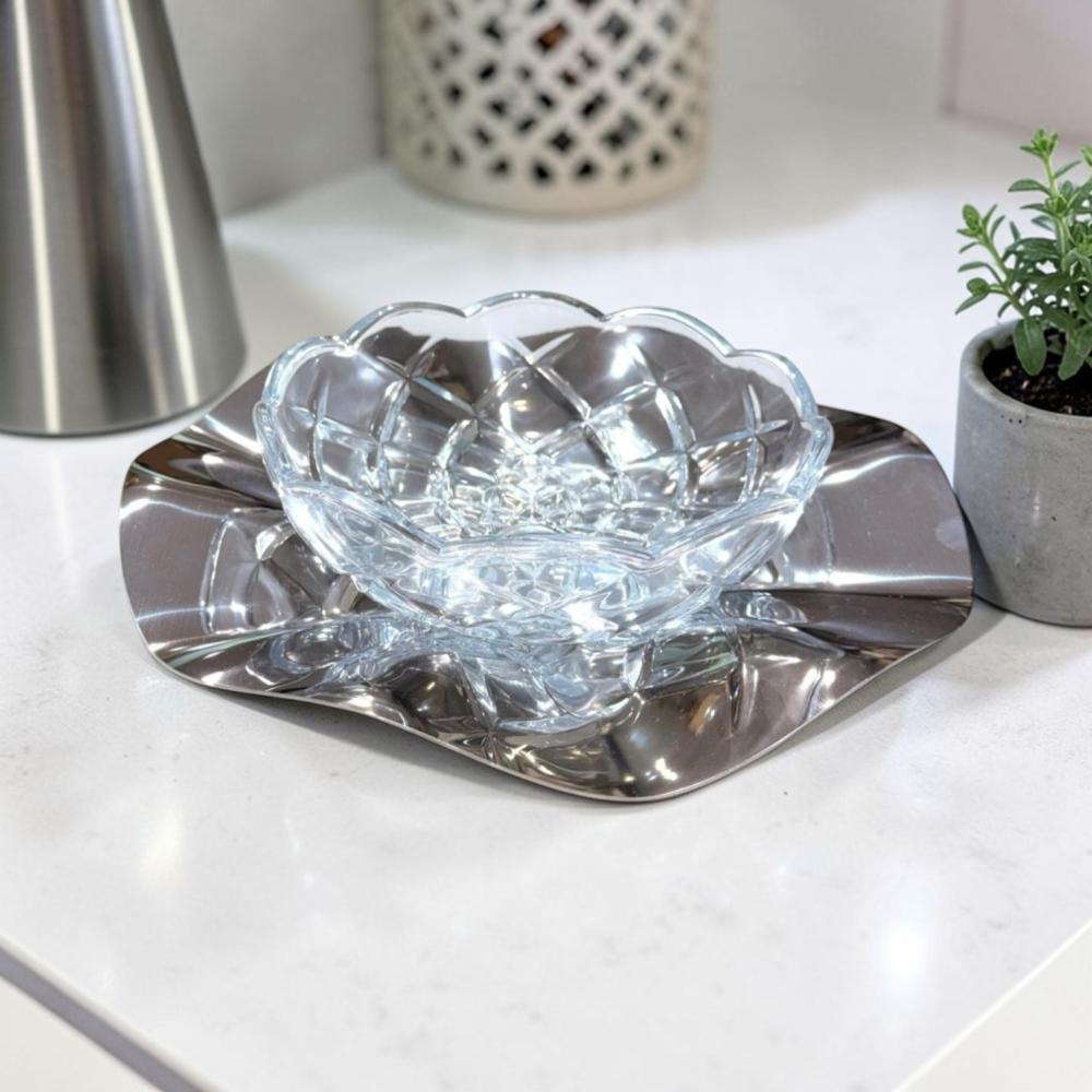 صحن زجاج بقاعدة ستيل