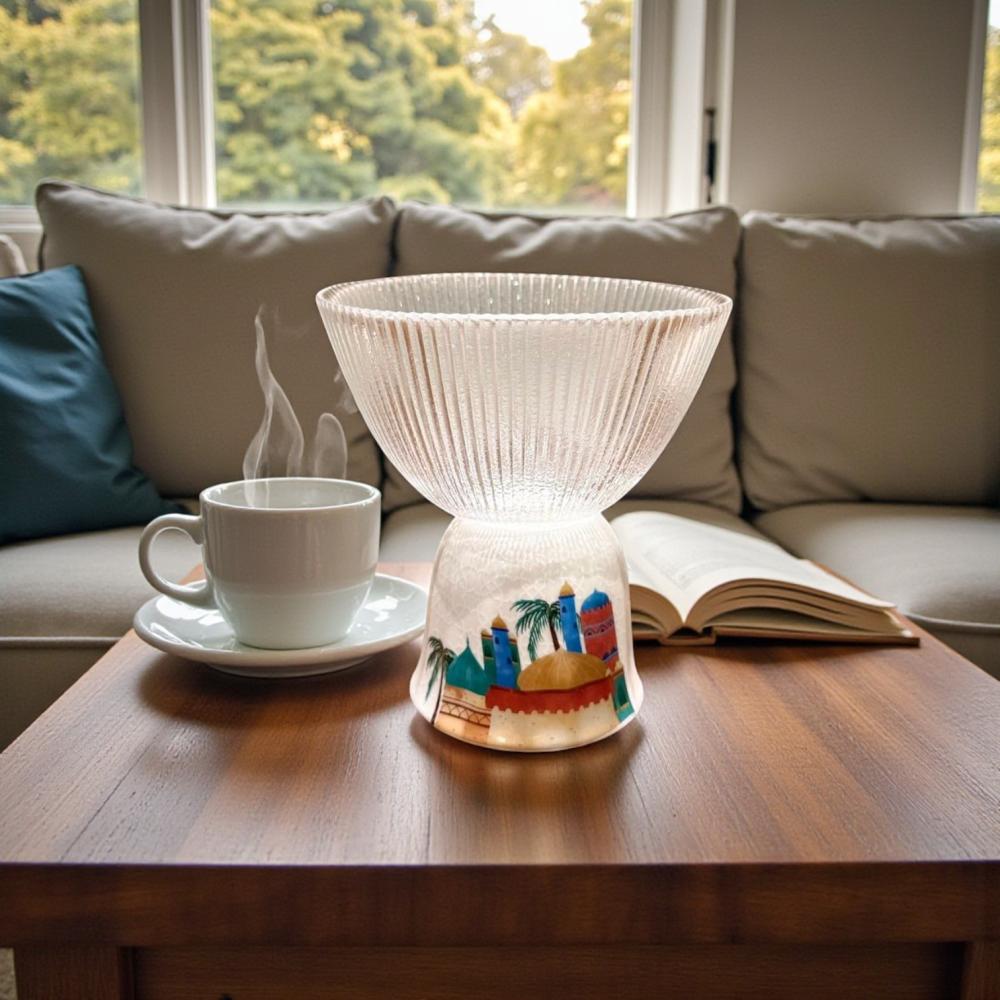صحن زجاج بقاعدة فنجان رمضان
