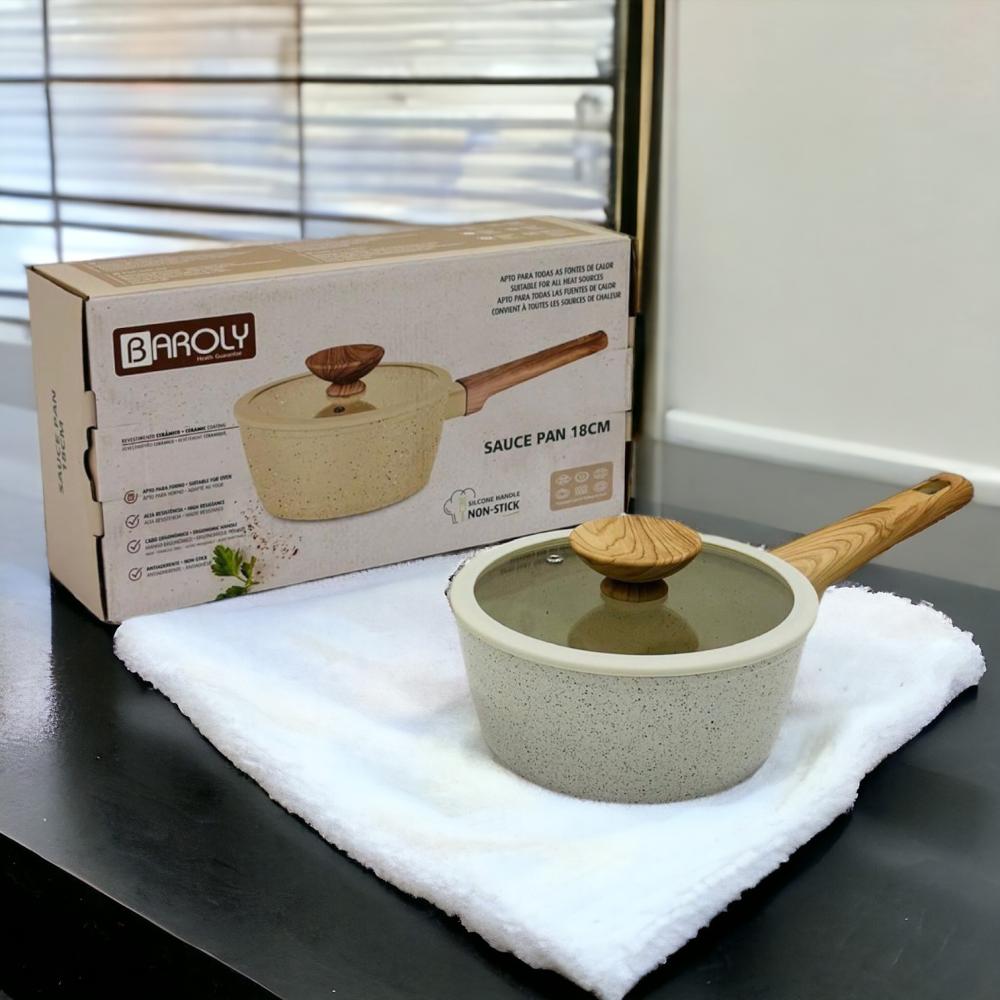 طاوة قلي جرانيت بغطاء زجاج مقاس 18 سم
