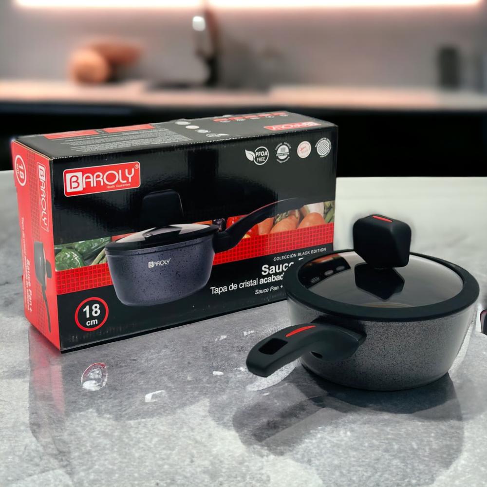 طاوة قلي جرانيت بغطاء زجاج مقاس 18 سم