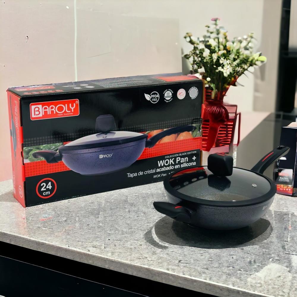 طاوة قلي جرانيت بغطاء زجاج مقاس 24 سم