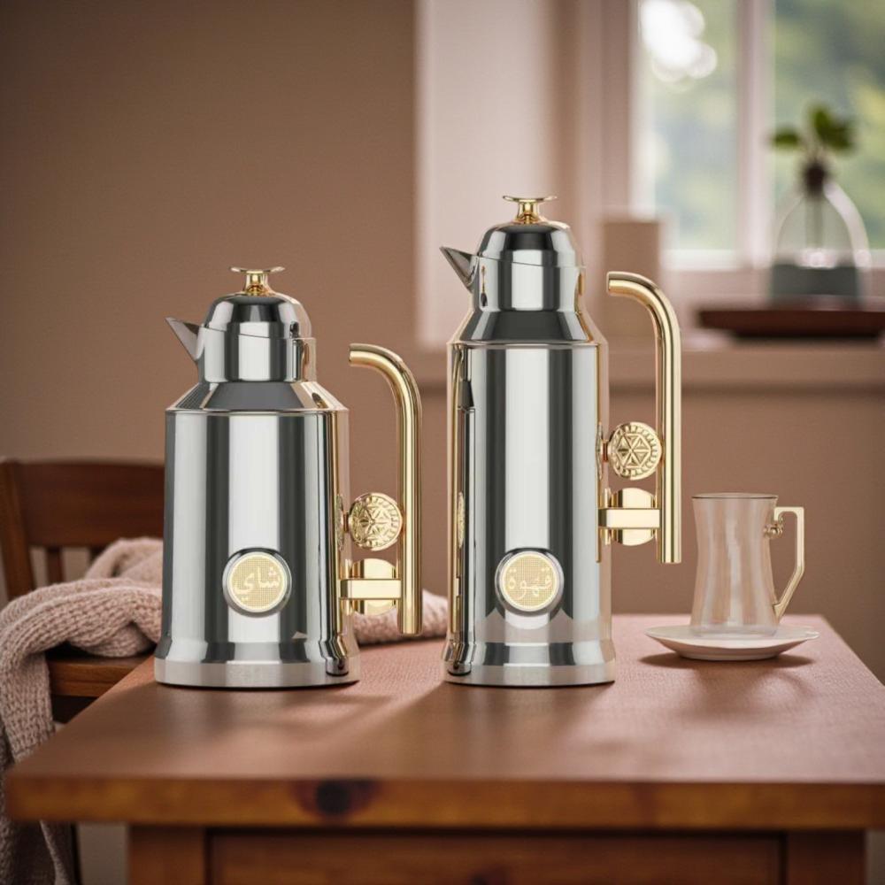 طقم ترامس ريفان 1 لتر فضي ذهبي