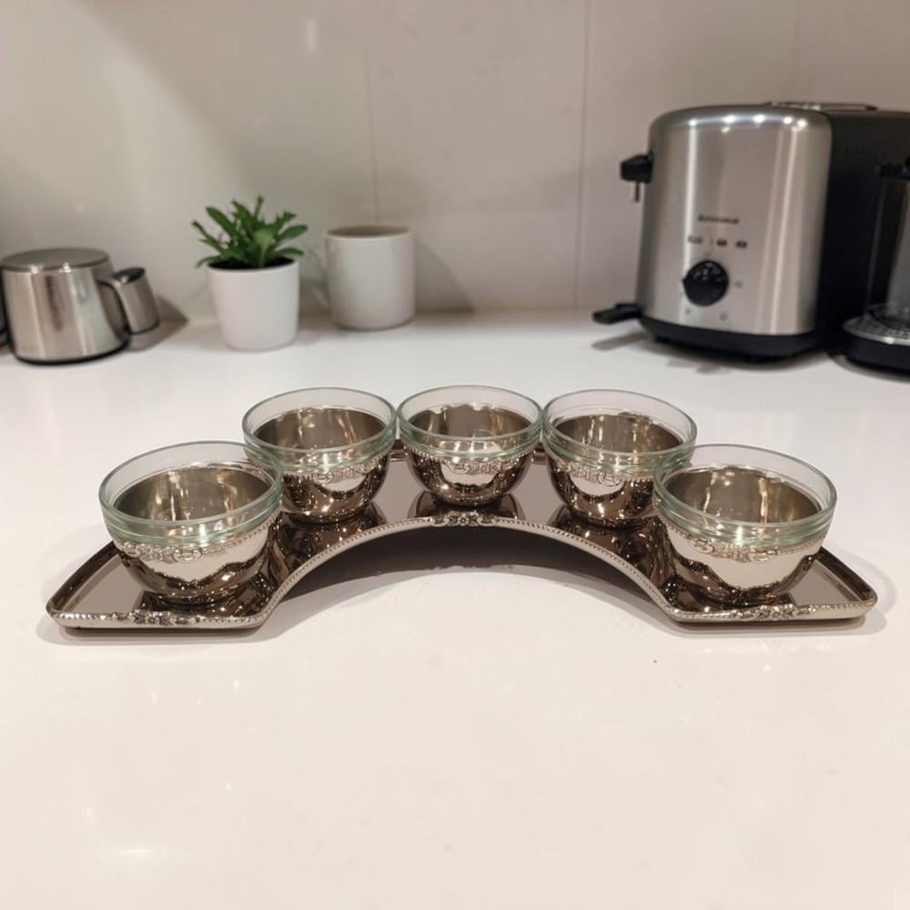 طقم تقديم 6 صحون زجاج استيل فضي وردة