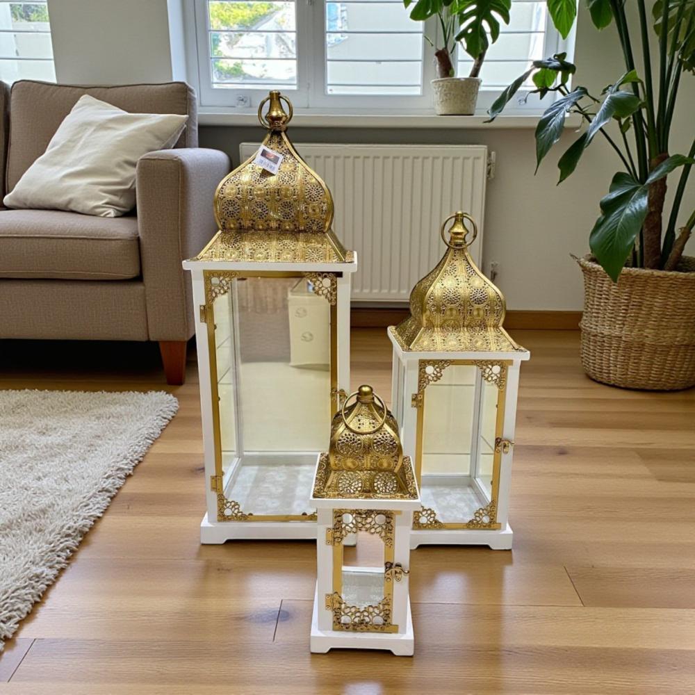 طقم فانوس رمضان 3 حبة ذهبي مقاس 37 - 60 - 79 سم