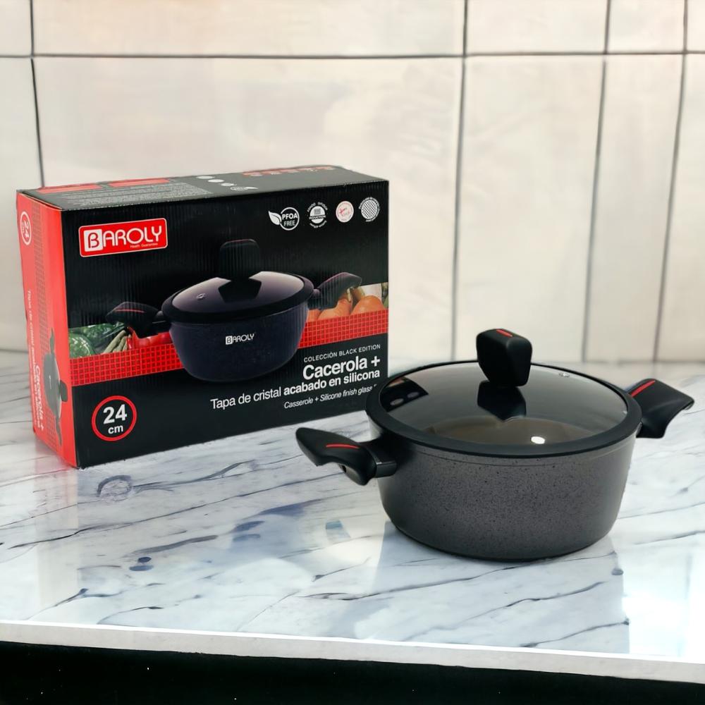 قدر جرانيت غطاء زجاج مقاس 26 سم