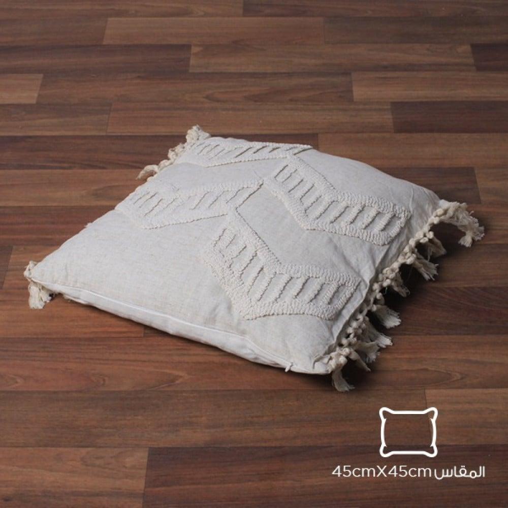 مخدمة قماش ديكور تراثي لون بيج - مربع
