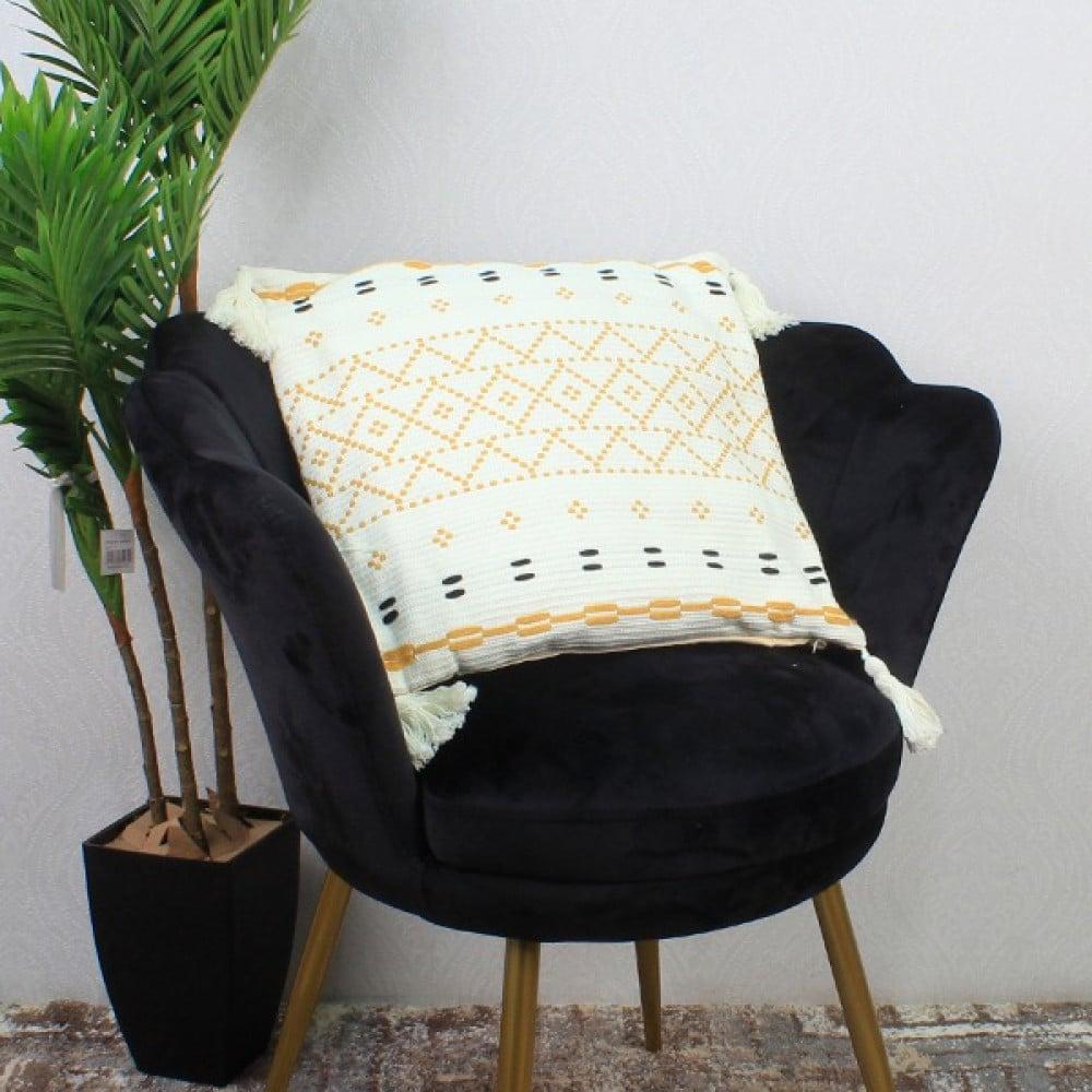 مخدمة قماش ديكور تراثي لون بيج - مربع