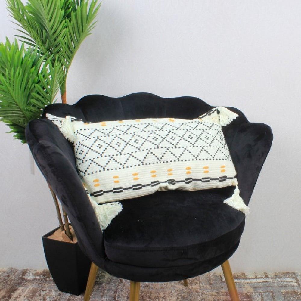 مخدمة قماش ديكور تراثي لون كحلي - مستطيل
