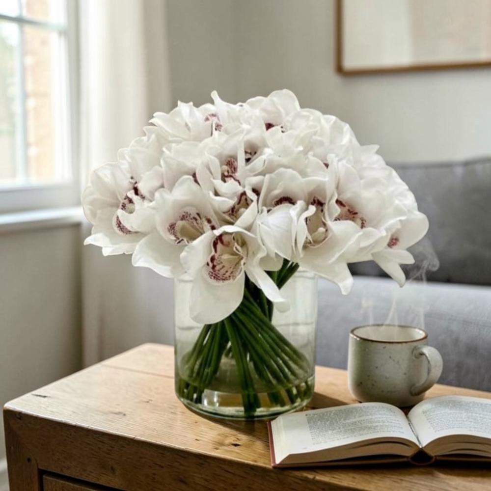 ورد تنسيق ابيض فازة زجاج