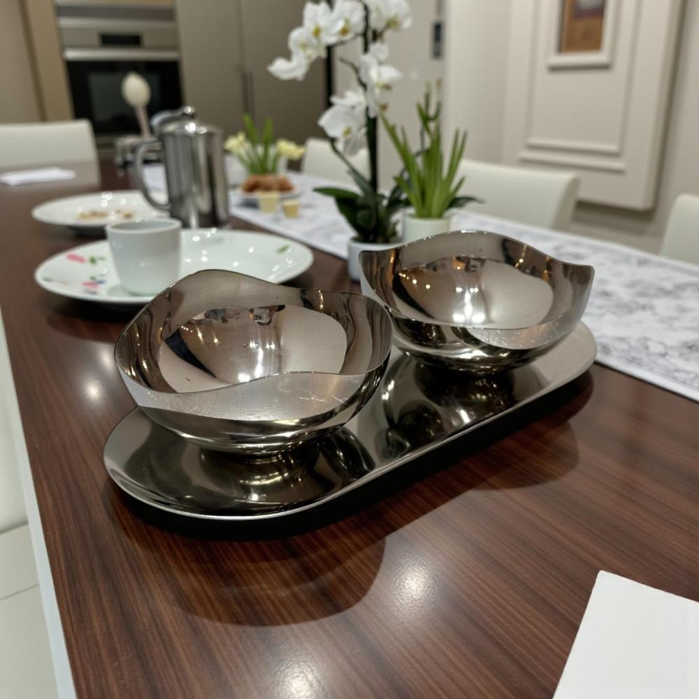 ًصحن استيل مع 2 صحن فضي